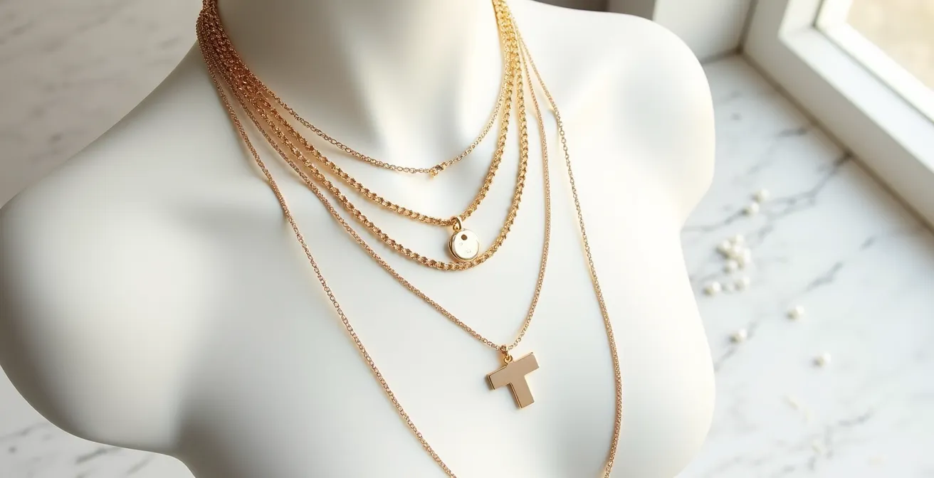Sie stehen vor dem Spiegel, in der Hand eine Auswahl Ihrer liebsten filigranen Ketten. Der Instagram-Feed ist voll von mühelos eleganten Lagenlooks, doch der eigene Versuch endet meist in einem unordentlichen Wirrwarr oder sieht schlicht „zu viel“ aus. Dieses Gefühl der Frustration kennt fast jede Schmuckliebhaberin. Man sagt Ihnen, Sie sollen einfach verschiedene Längen mischen und mutig sein, doch das Ergebnis fühlt sich selten so an wie bei den Profis. Das Geheimnis liegt nicht darin, einfach mehr Schmuck anzulegen, sondern darin, ihn wie eine Komponistin zu arrangieren, die Noten zu einer Melodie fügt.