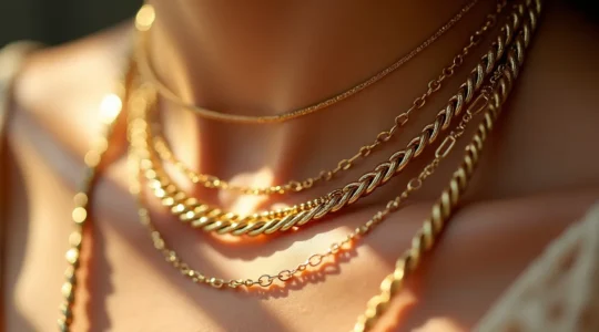 Das Schichten von Halsketten ist eine Kunst für sich. Eine einfache Formel für den Einstieg ist die 3-Stufen-Regel, die auf unterschiedlichen Längen und Texturen basiert: