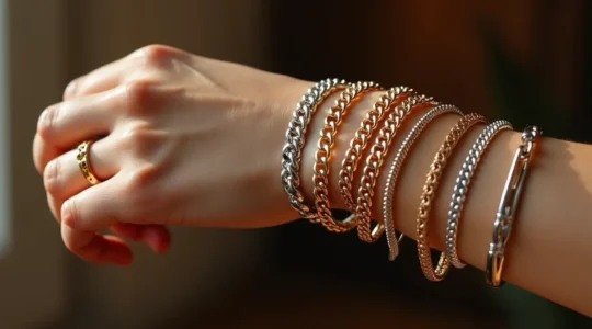 Das Prinzip des Layerings lässt sich perfekt auf Armbänder übertragen. Kombinieren Sie verschiedene Stile – einen zarten Armreif, ein feines Gliederarmband und vielleicht ein Armband mit kleinen Perlen. Eine Armbanduhr kann ebenfalls Teil des „Wrist-Stacks“ sein. Eine bewährte Methode ist es, die Uhr an einem Handgelenk zu tragen und den Armbänder-Stack am anderen, um eine ausgewogene Optik zu erzielen.